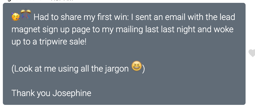 Making sales through my funnel has been so boosting. Seeing a sale come through from 'doing nothing' feels great.